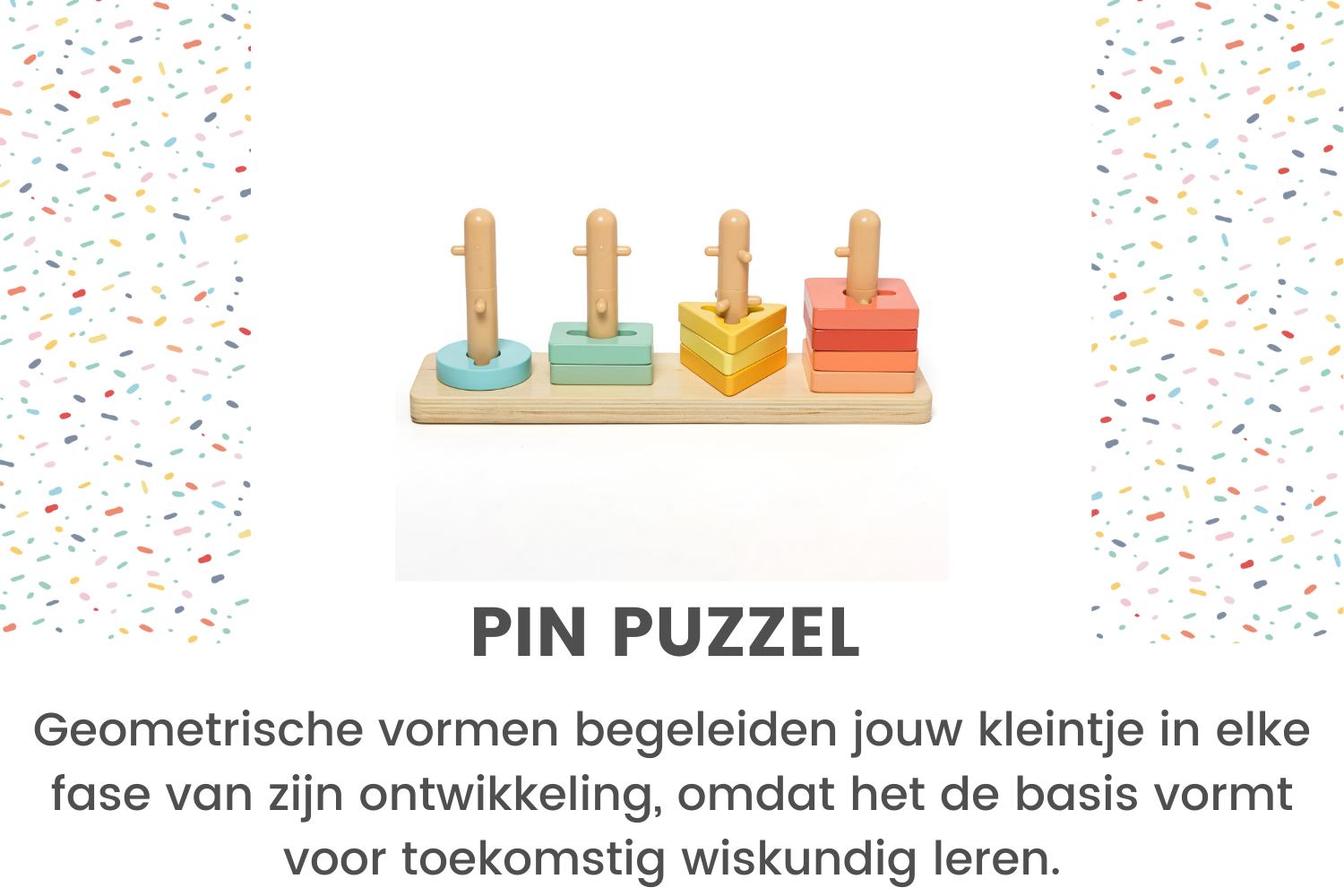 Pin PuzzelProbeer alle vormen op hun plaats te krijgen! Kleurrijke geometrische vormen moeten met grote vaardigheid en concentratie in de bijbehorende staven worden gepast. Met dit associatiespel werkt je baby aan zijn motoriek en zijn vormherkenning. Langdurig, fantastisch plezier.
