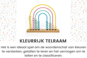 Kleurrijk TelraamTellen is een essentiële vaardigheid en veel leuker met dit kleurrijke telraam. De regenboog bestaat uit gekleurde metalen bogen op een houten basis met 10 houten kralen in elke boog. Een mooi en duurzaam educatief materiaal. |