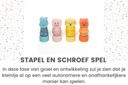Gedurende de eerste jaren leert jouw baby een groot deel van zijn toekomstige vaardigheden en dit gaat supersnel! Iedere maand leert die kleine weer iets nieuws! Het is ontzettend belangrijk hem juist te stimuleren met educatief speelgoed dat specifiek past bij elke groeifase.